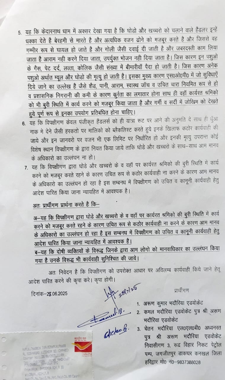 देहरादून: राज्य मानवाधिकार आयोग ने एक याचिका को स्वीकार करते हुए जिलाधिकारी रुद्रप्रयाग और जिलाधिकारी चमोली को नोटिस जारी किया है। आयोग ने दोनों अधिकारियों को निर्देश दिए हैं कि वे इस मामले में 2 सितंबर 2025 तक अपना जवाब दाखिल करें।