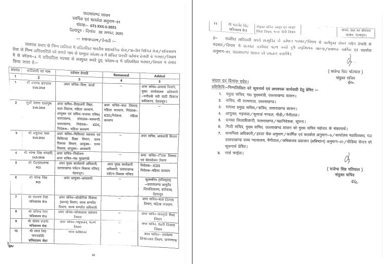 उत्तराखंड शासन ने प्रशासनिक फेरबदल की एक और बड़ी सूची जारी की है। शासन की ओर से जारी आदेश के मुताबिक 11 अधिकारियों के विभागीय दायित्वों में बदलाव किया गया है। जिसे लेकर आदेश भी जारी हो गए हैं।